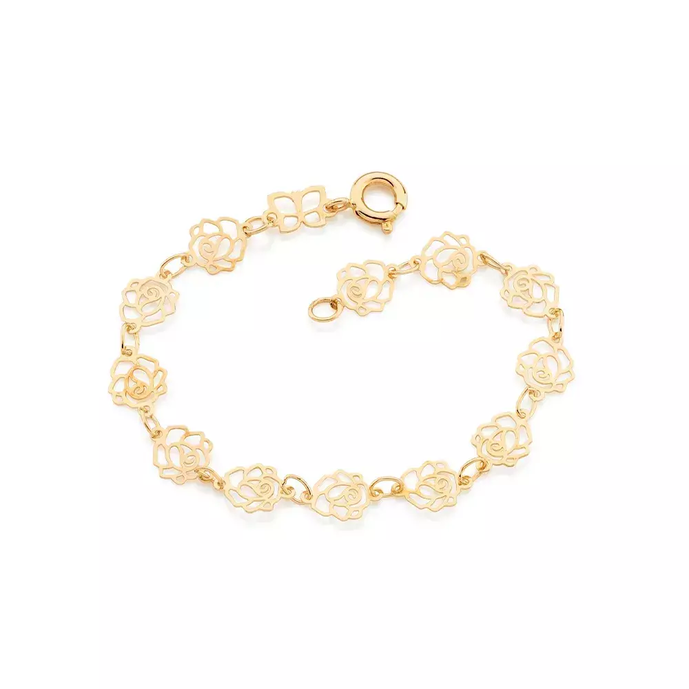 Pulseira Banhada A Ouro 18K Infantil Formada Por Rosas - Tam.14